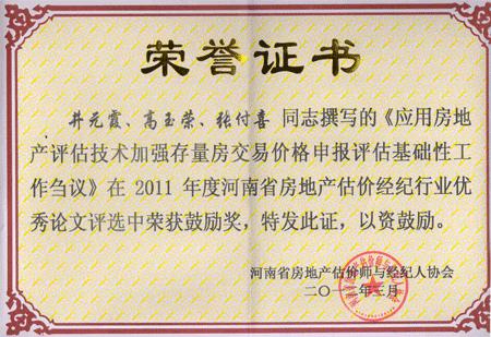 河南省房地產業協會估價經紀專